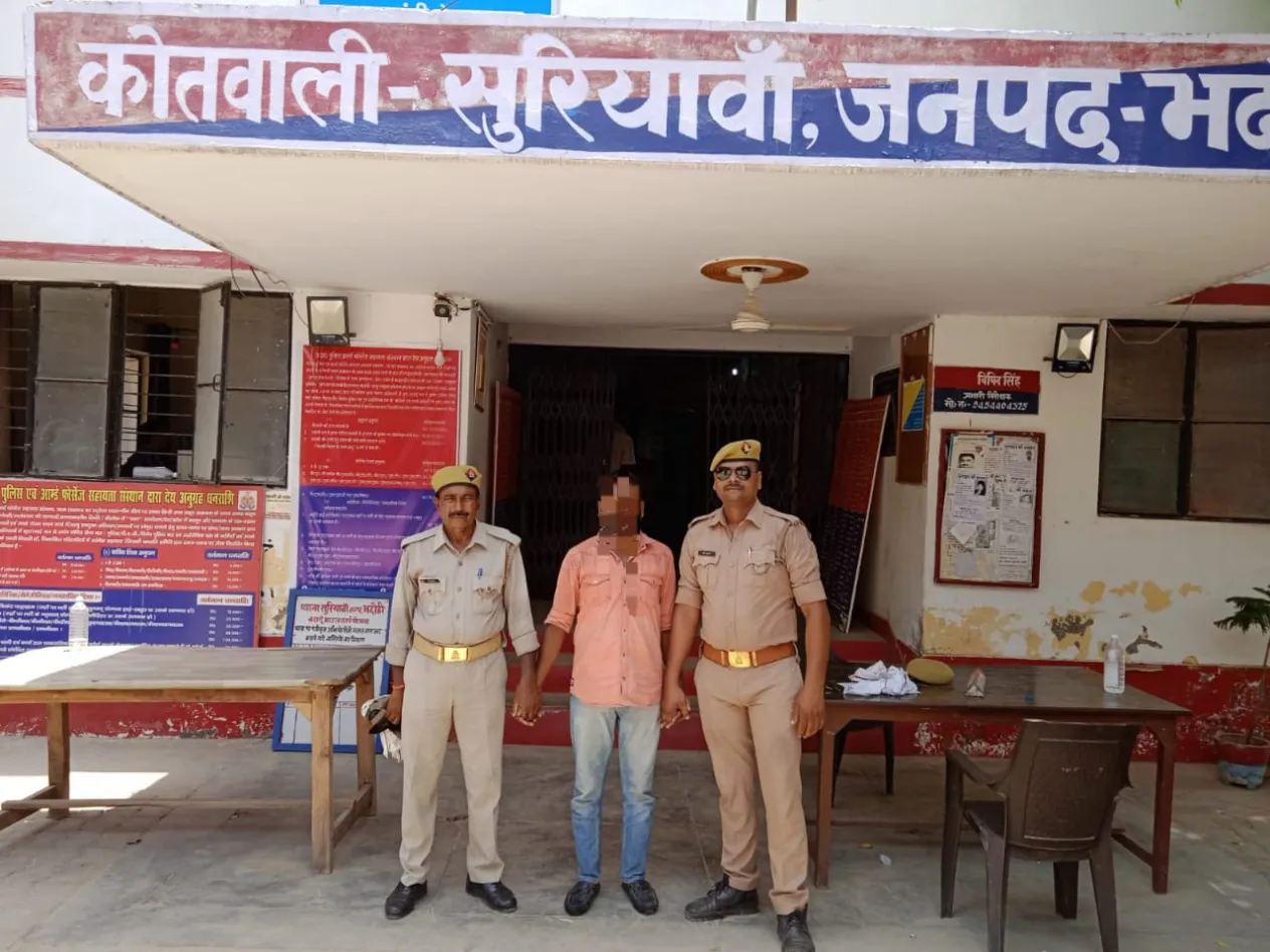 डॉ0 अनिल कुमार, पुलिस अधीक्षक भदोही द्वारा ठगी के घटना में शामिल अभियुक्तों की गिरफ्तारी हेतु निर्देश के क्रम में स्थानीय पुलिस द्वारा पंजीकृत अभियोग से संबंधित अभियुक्त का युवराजू मुप्पला पुत्र मुप्पला निवासी गंगाधरम मैरी चेन्ना रेड्डी कालोनी अलिपिरी जनपद तिरुपति अर्बन (आन्ध्रप्रदेश) को रेलवे स्टेशन भदोही के पास से गिरफ्तार किया गया। घटना में शामिल शेष वांछित अभियुक्तों की गिरफ्तारी हेतु प्रयास किया जा रहा है।