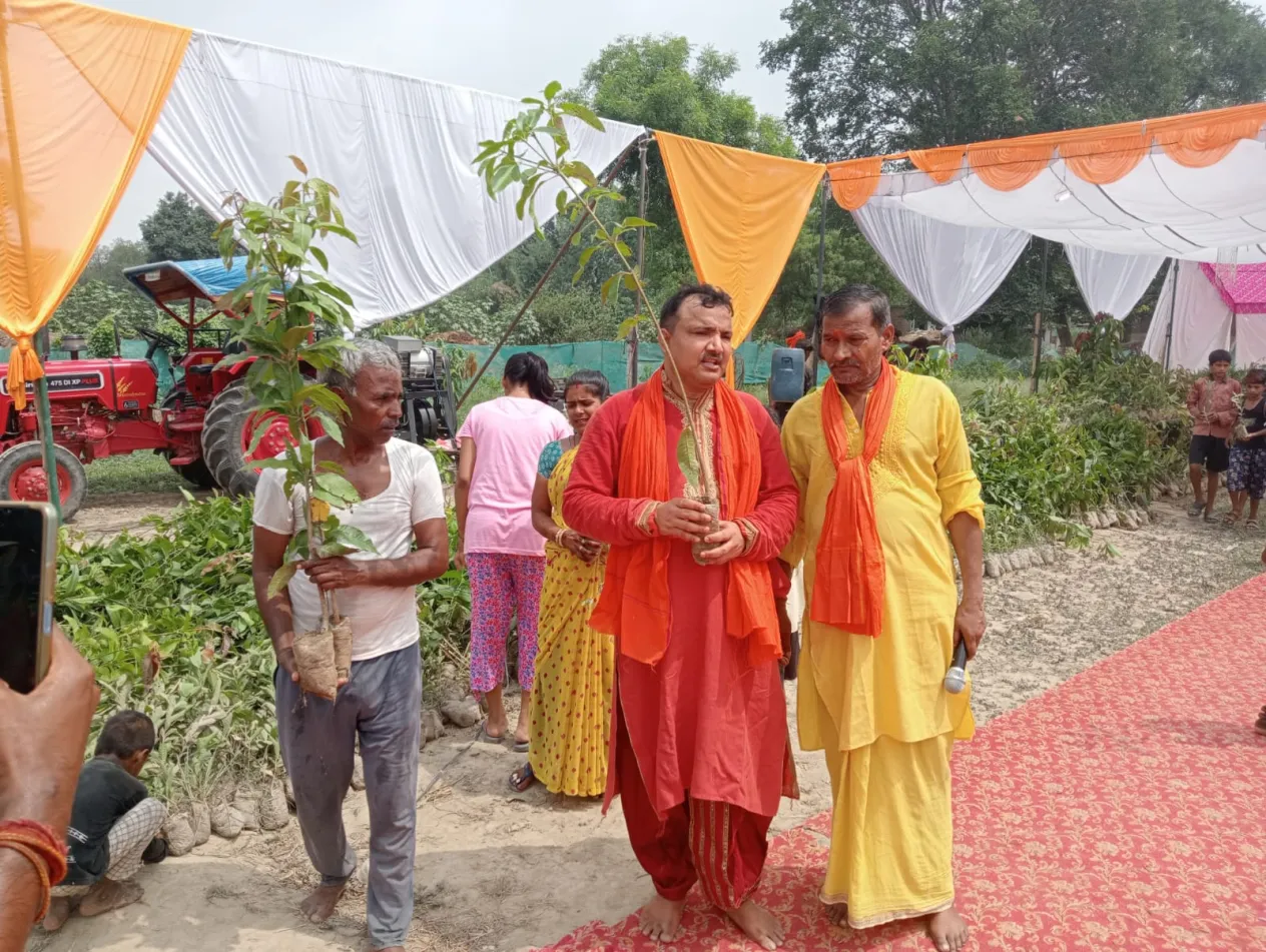 संताव विकास खंड क्षेत्र के रहने वाले समाज सेवी व पर्यावरण प्रेमी धर्मेंद्र मिश्रा द्वारा आयोजित श्रीमद् भागवत कथा के समापन के पश्चात आज शुक्रवार को विशाल ब्रह्मभोज का आयोजन किया गया जिसमें उनके द्वारा एक बेहतरीन पहल भी की गई जिसकी लोग सराहना कर रहे हैं, पर्यावरण प्रेमी धर्मेंद्र मिश्रा द्वारा ब्रह्म भोज में पहुंचने वाले श्रद्धालुओं को प्रसाद स्वरूप पौधे दिए गए बता दें कि संताव विकासखंड क्षेत्र के ग्राम बल्ला बरौला के रहने वाले समाजसेवी धर्मेंद्र मिश्रा द्वारा दिनांक 15 जून से श्रीमद् भागवत कथा आयोजन किया गया था l