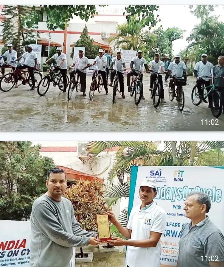 प्रधानमंत्री के आवाहन पर फिट इंडिया के तहत भारतीय खेल प्राधिकरण से निकल गई साइकिल रैली