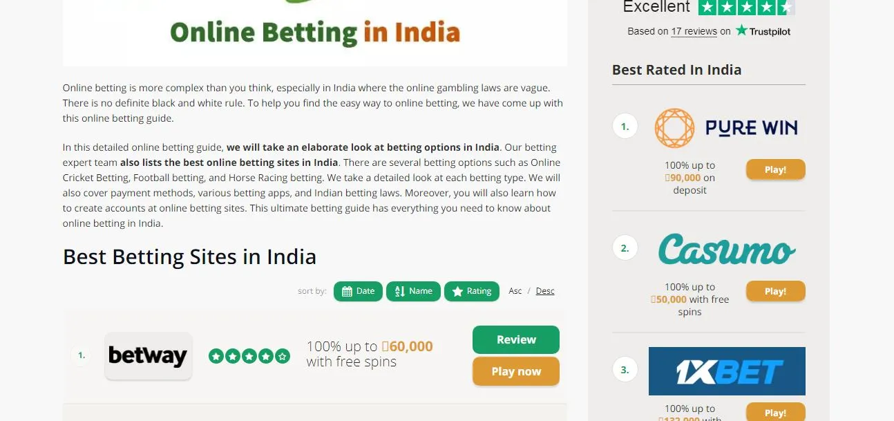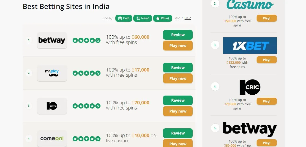 हमने भारत में ऑनलाइन सट्टेबाजी साइटों की समीक्षा की, और जो नाम सर्वश्रेष्ठ हैं वो निम्नलिखित हैं:
