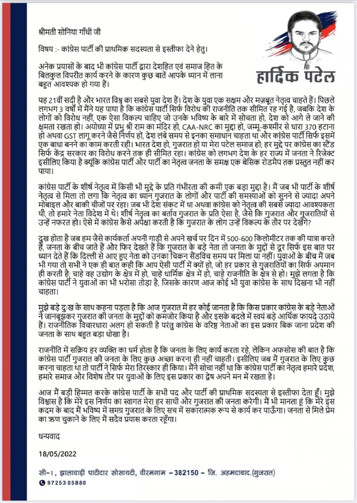 हार्दिक पटेल ने कांग्रेस पर क्या आरोप लगाए