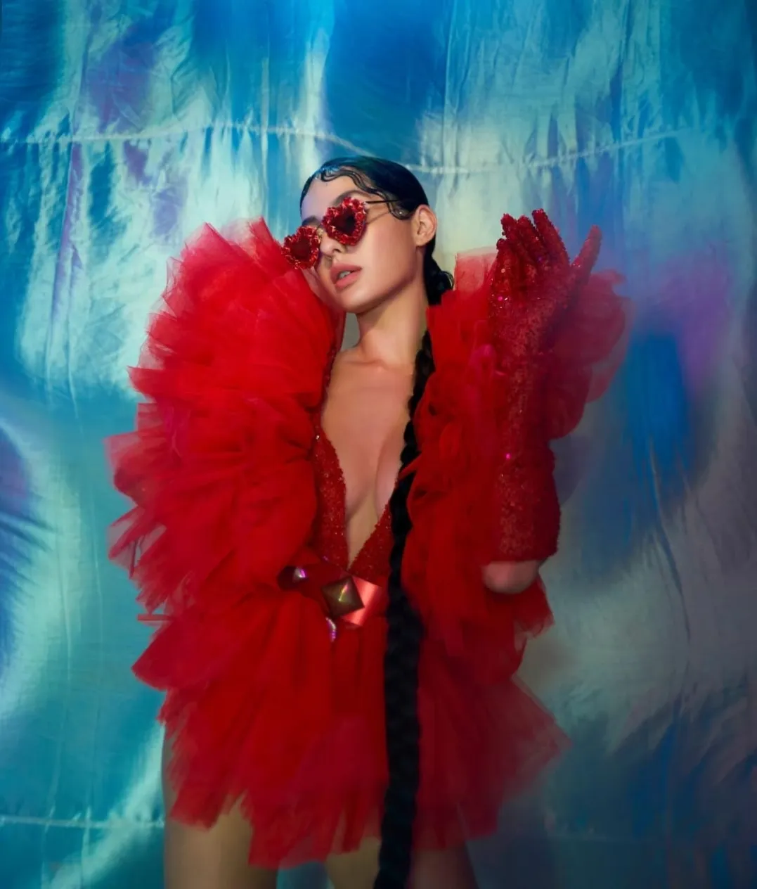 Nora Fatehi ने लाल रंग का डीप नैक ड्रेस में कराया फोटोशूट ढाया कहर