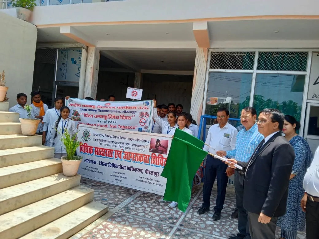 जनपद न्यायाधीश / अध्यक्ष जिला विधिक सेवा प्राधिकरण अनमोल पाल के आदेशानुसार 31 मई विश्व तम्बाकू निषेध दिवस के अवसर पर जिला विधिक सेवा प्राधिकरण मीरजापुर तथा स्वास्थ्य विभाग के जी.डी. मेमोरियल पैरामेडिकल कालेज सारीपुर के संयुक्त तत्वावधान में तम्बाकू निषेध विषय पर जागरूकता शिविर का आयोजन किया गया।