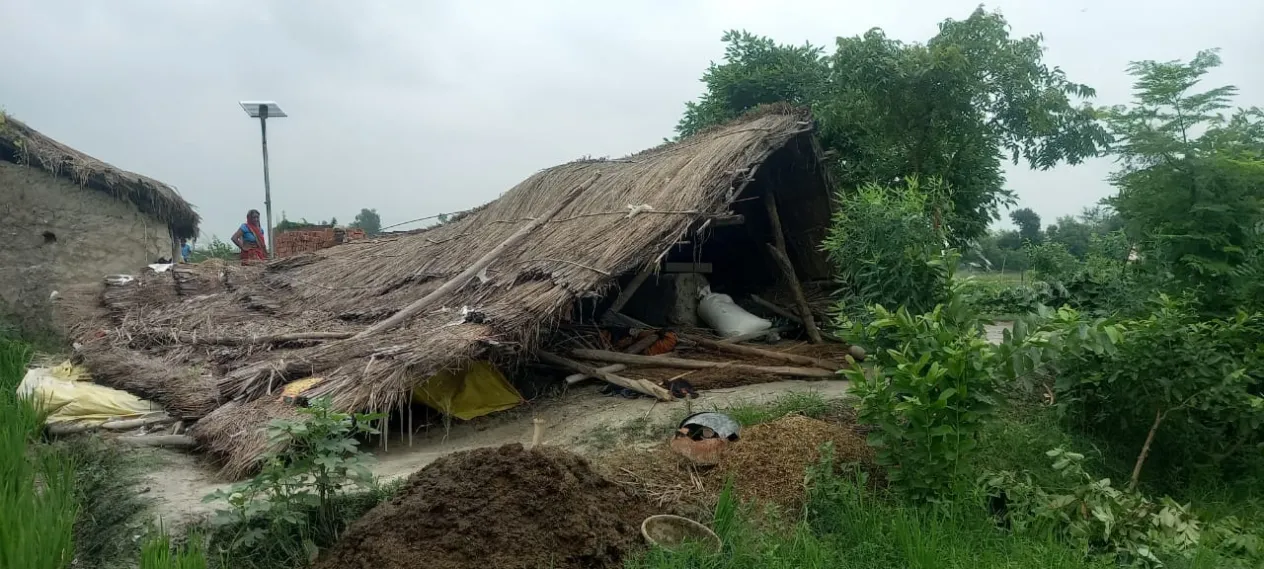 तेज हवा और बारिश के चलते गरीब का ढहा आशियाना,बाल बाल बची वृद्ध महिला