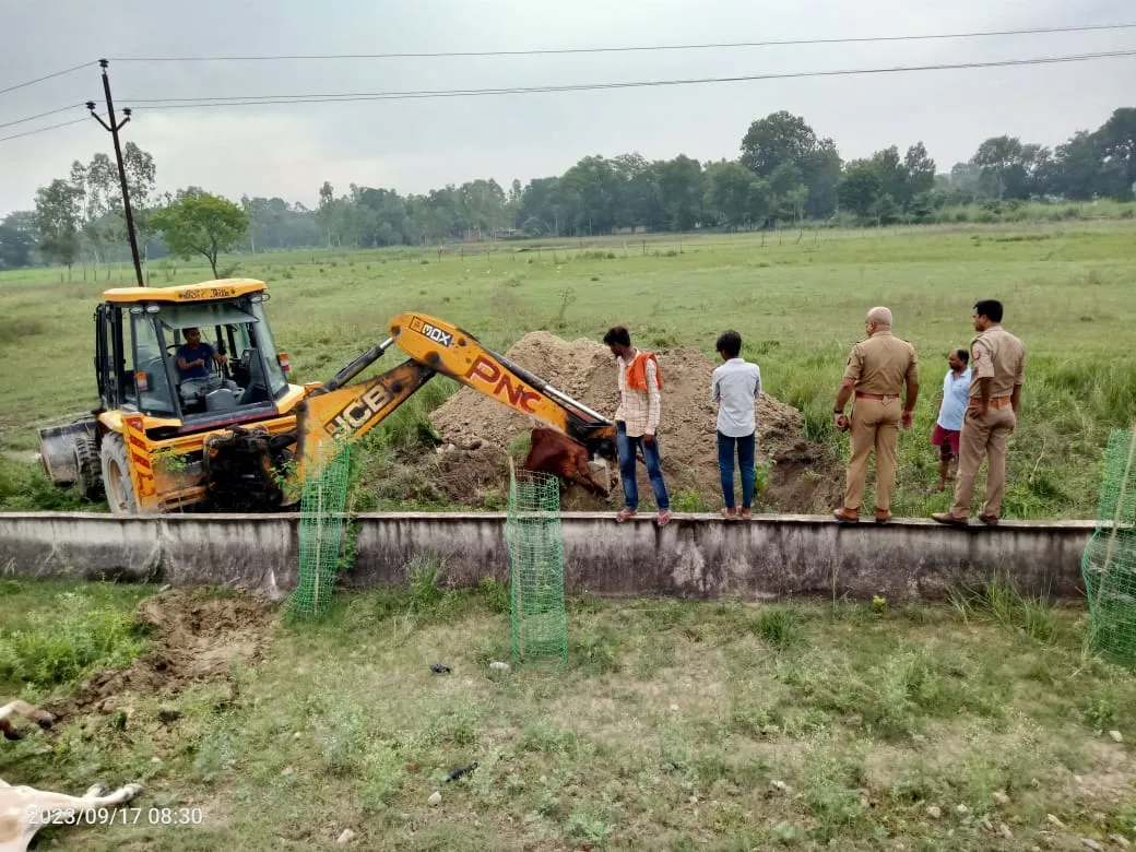 घटना की जानकारी गौ रक्षक दल के सदस्य नितेश सिंह ने प्रभारी निरीक्षक कोतवाली इनायत नगर अरुण प्रताप सिंह एसएचओ कुमारगंज संजीव कुमार सिंह को दी जानकारी मिलते ही दोनों थानों के प्रभारी निरीक्षक पुलिस फोर्स के साथ मौके पर पहुंचकर उप जिलाधिकारी मिल्कीपुर राजीव रतन सिंह की मौजूदगी में जेसीबी मशीनो से मृतक गोवंशों को गढ्ढा खुदवा कर दफनावा दिया।