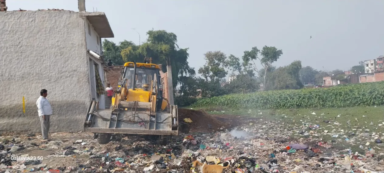 तालाब की जमीन पर कब्जा करने वालों पर चला बुलडोजर