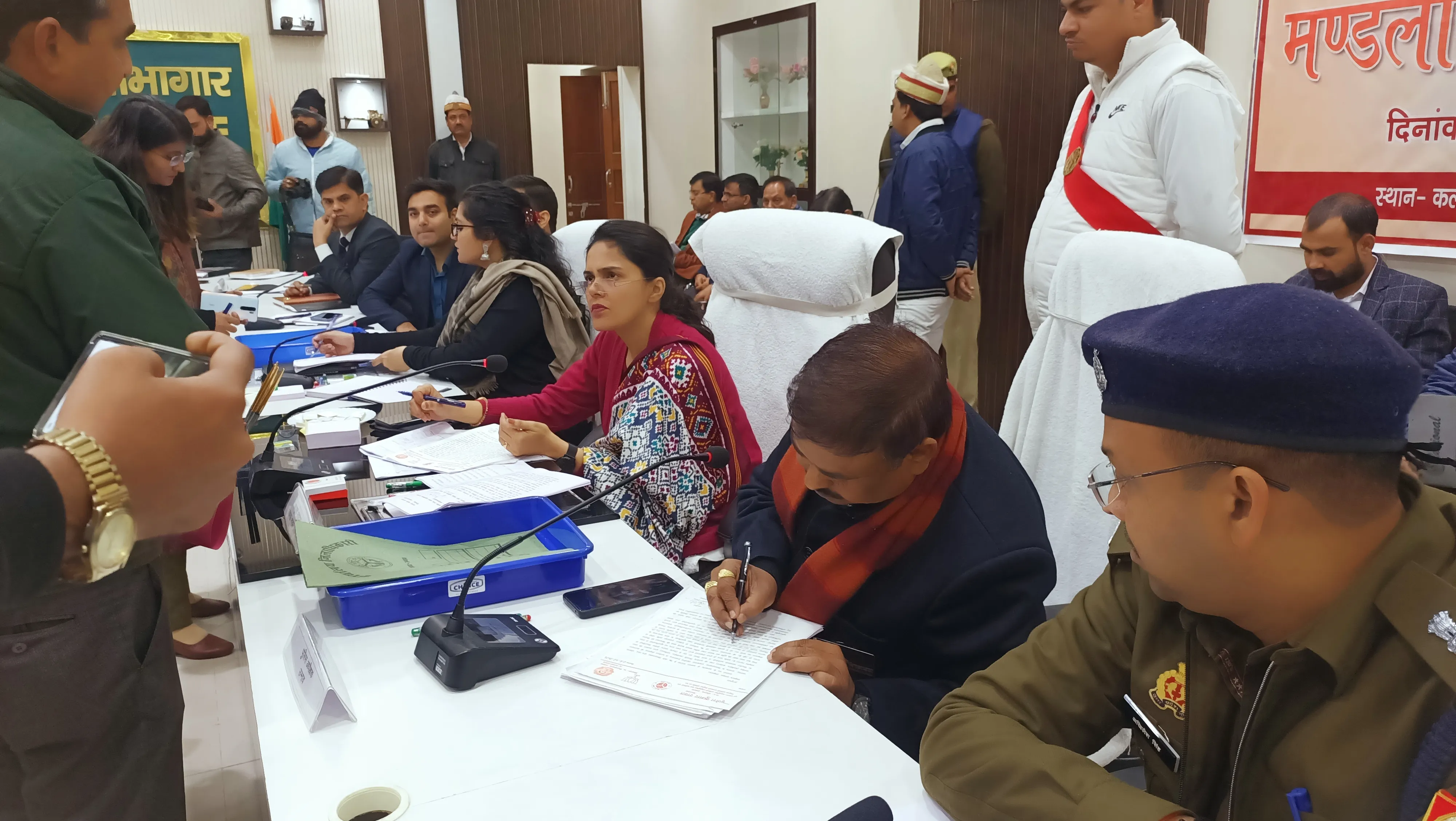 कमिश्नर के जनता दरबार के दौरान लेखपालों का कड़ा पहरा रहा। चारों तरफनजरें जमायें हुए 2 थे कि कोई राजस्व का मामला कमिश्नर के सामने न पहुंचने पाये। अयोध्या ने अपना दुखड़ सुनाते हुए कहा कि दबंग भूमाफिया की बीरबल गुजराती और क्षेत्रीय लेखपाल की मिलीभगत से जमीन पर अवैध कब्जा हो रहा है। लेखपाल ने पूरी बात एसडीएम को बतायी। एसडीएम ने कहा दो-तीन दिन के बाद आना।