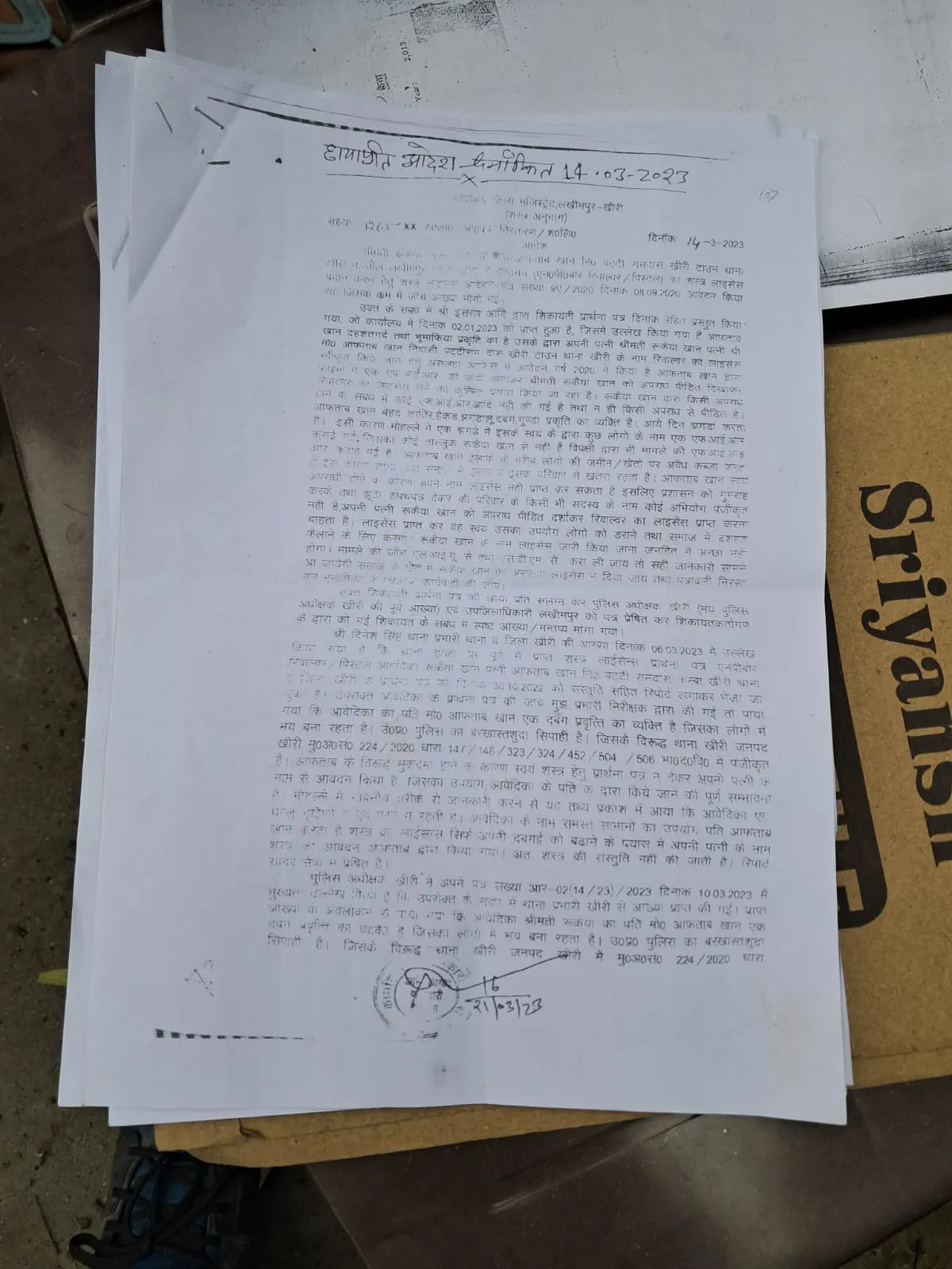 पुलिस अधीक्षक खीरी को 24 जनवरी 2024 को दिए गए लिखित शिकायती प्रार्थना पत्र में जीतू माथुर ने प्रशासन पर गंभीर आरोप लगाए हैं। भू माफियाओं को संरक्षण देने व मंदिर की जमीन पर अवैध कब्जा करवाने के आरोप स्थानीय पुलिस प्रशासन पर लगाए हैं। जीतू माथुर के बताएं अनुसार मृतक महेश चंद्र माथुर ने राधा कृष्ण मंदिर ट्रस्ट की जमीन को भू माफिया आफताब खान और सलीम अंसारी को बेच डाली। जिसकी उसने जनसुनवाई और ऑनलाइन शिकायतें भी की थी।