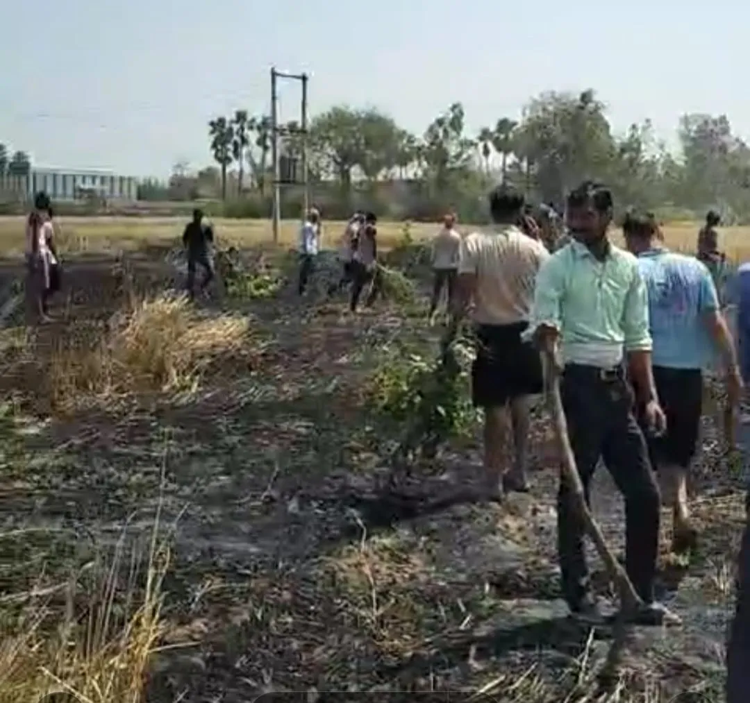 रक्षामंत्री के गोद लिए आदर्श ग्राम बेंती में अफसरों की लापरवाही से गेहूं की फसल जलकर हुई राख