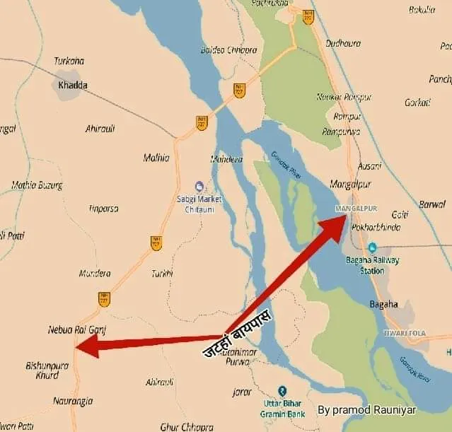 मंत्रालय द्वारा स्पष्ट किया गया कि बगहा के अवसानी निकट एसएसबी कैंप कैंप के पास मंगलपुर से जटहां गंडक मार्ग बेलवनिया वाया नेबुआ रायगंज एनएच 727 से जुड़ेगा।