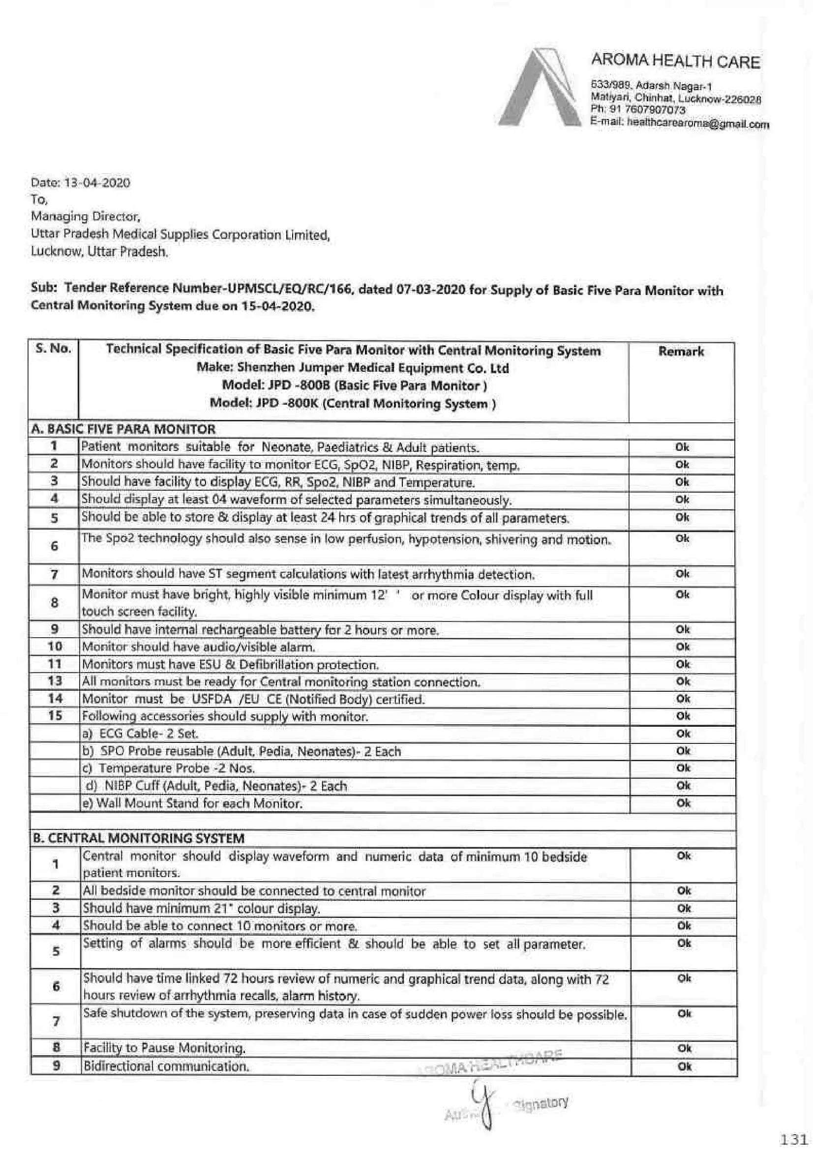 उत्तर प्रदेश मेडिकल कारपोरेशन द्वारा नवजात शिशुओं के लिए खरीदे गए जीवन रक्षक उपकरण पेशेंट मॉनिटर के टेंडर संख्या UPMSCL/EQ/RC/166 में कुल चार कंपनियों ने प्रतिभाग किया जिसमे से दो कम्पनिया POCT SERVICES, AROMA HEALTHCARE की है, जिनको टेक्निकल और फाइनेंसियल बिड दोनों में पास किया गया, सबसे बड़ा सवाल यह है की एक ही व्यक्ति की दो कंपनियों को एक ही टेंडर में कैसे और क्यों प्रतिभाग करने दिया जा रहा है??? यह तो नियम विरुद्ध है