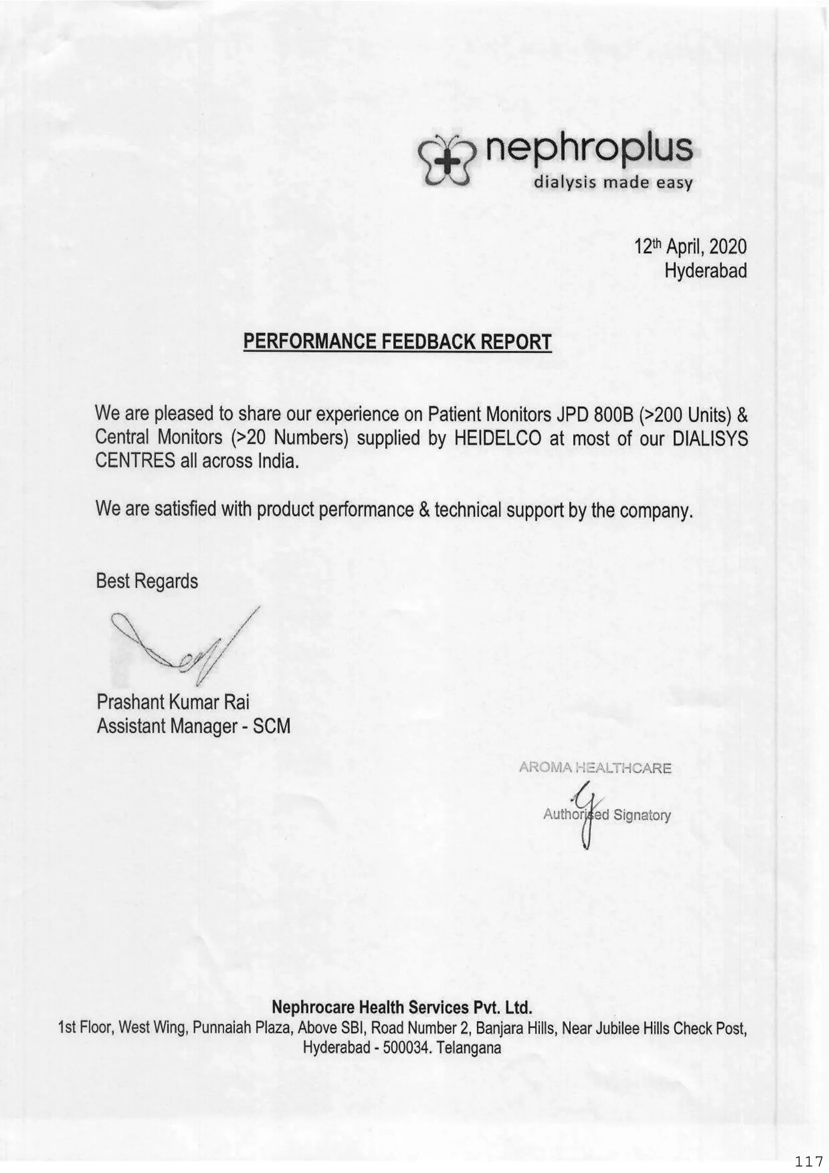 इसी प्रकार से परफॉरमेंस सर्टिफिकेट भी कुख्यात शातिर दलाल जीजा साले की एक अन्य कंपनी HEIDELCO MEDICORE के लगाए गए हैं, न तो कोई क्रय आदेश किसी सरकारी विभाग का हैं और न ही पर्फोर्मस सर्टिफिकेट किसी भी सरकारी विभाग का हैं