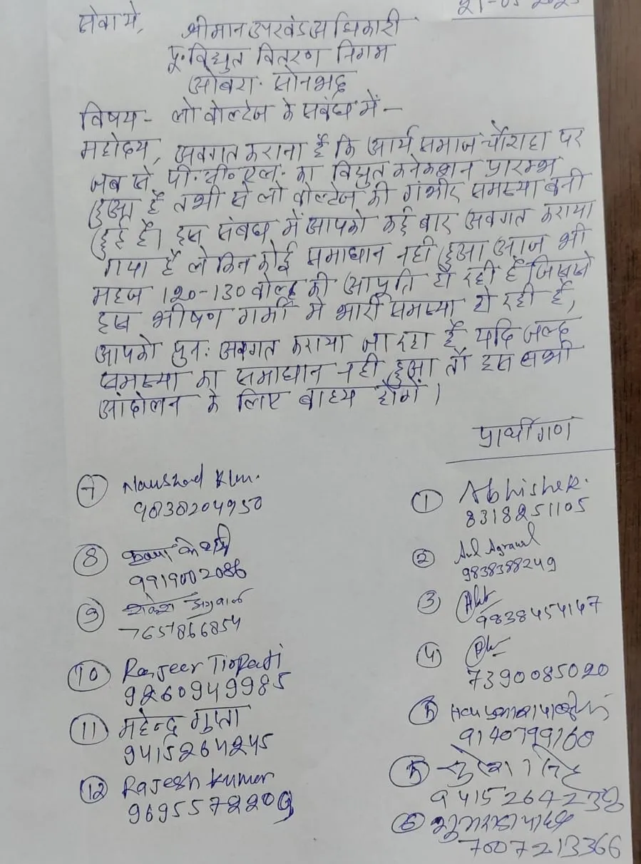 इस ट्रांसफार्मर पर अत्यधिक लोड के कारण ही लो वोल्टेज की समस्या बनी हुई है। जानकारी के अनुसार, सुभाष तिराहे से लेकर चड्ढा मार्केट तक 11 हजार की नई लाइन बिछाने के लिए विभाग द्वारा टेंडर भी करा दिया गया है और पिछले वर्ष खंभे भी खड़े कर दिए गए हैं, लेकिन कार्य अभी तक पूर्ण नहीं हुआ है, जिससे समस्या जस की तस बनी हुई है।ज्ञापन सौंपने के दौरान कृष्णा केशरी, राकेश कुमार, अनिल अग्रवाल, अभिषेक पाण्डेय, नौशाद खान, सुरेश सिंह, राजीव त्रिपाठी, शुभराज यादव, राजेश कुमार, अशोक चौहान, महेंद्र गुप्ता, प्रदीप सोनी, देवेंद्र शर्मा सहित कई अन्य उपभोक्ता उपस्थित रहे। उन्होंने स्पष्ट कहा कि यदि जल्द से जल्द इस समस्या का समाधान नहीं हुआ तो वे बड़े आंदोलन के लिए बाध्य होंगे।