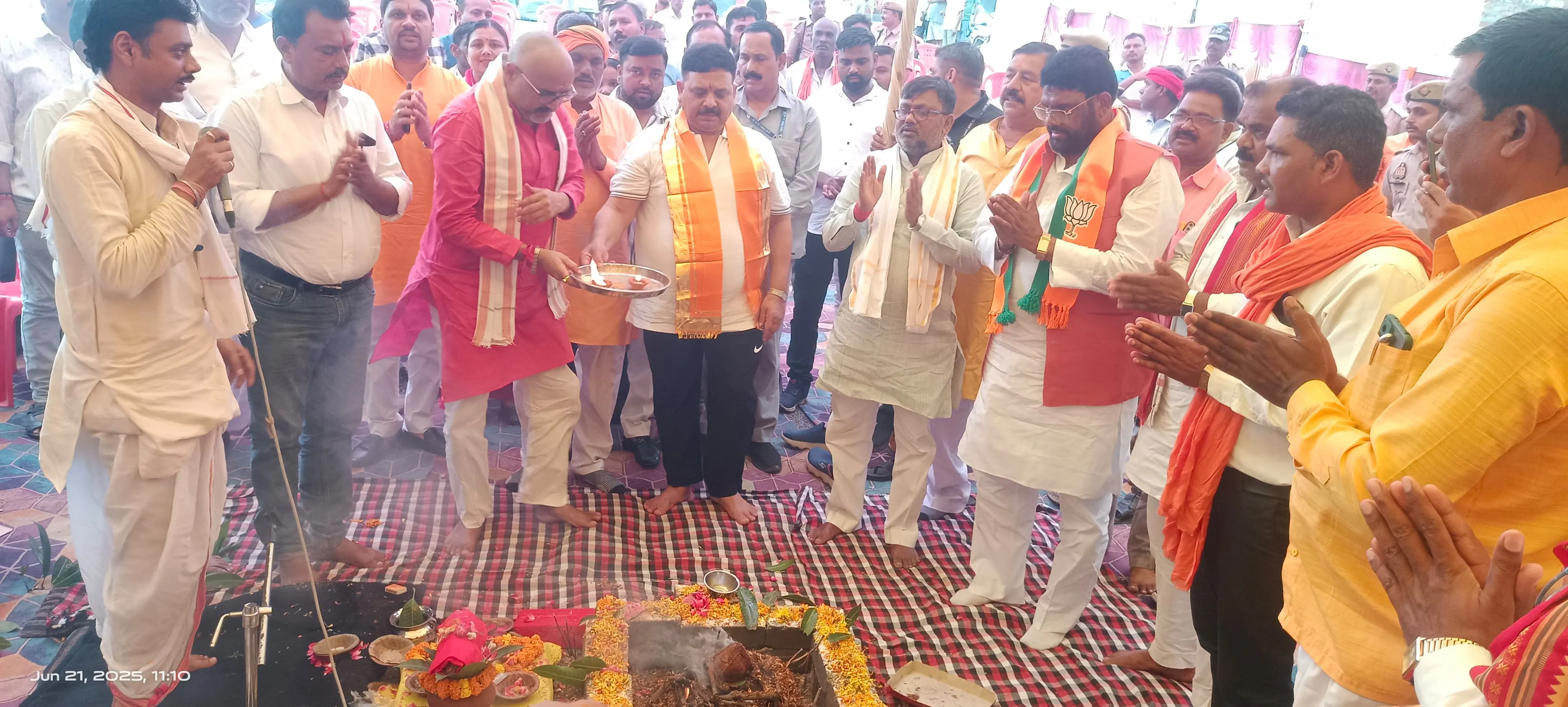 तेलगुड़वा कोन मार्ग का प्रभारी मंत्री ने वैदिक मंत्रोंच्चार के साथ किया भूमि पूजन
