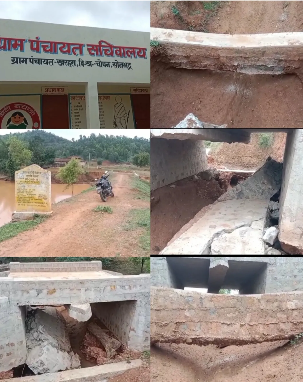 जनपद सोनभद्र के चोपन ब्लॉक अन्तर्गत ग्राम पंचायत में विकास योजनाओं के नाम पर भ्रष्टाचार का ग्रहण लगता दिख रहा है। बतातें चलें कि ग्राम पंचायत खरहरा के टोला गौरघटी में तीन महीने पहले ही बनी एक पुलिया पहली ही बरसात में धाराशाई हो गई । यह घटना सरकारी दावों की पोल खोलती नजर आ रही है जो कि ग्राम प्रधान व ग्राम विकास अधिकारी की कार्यप्रणाली पर गंभीर सवाल खड़ा कर रहा है