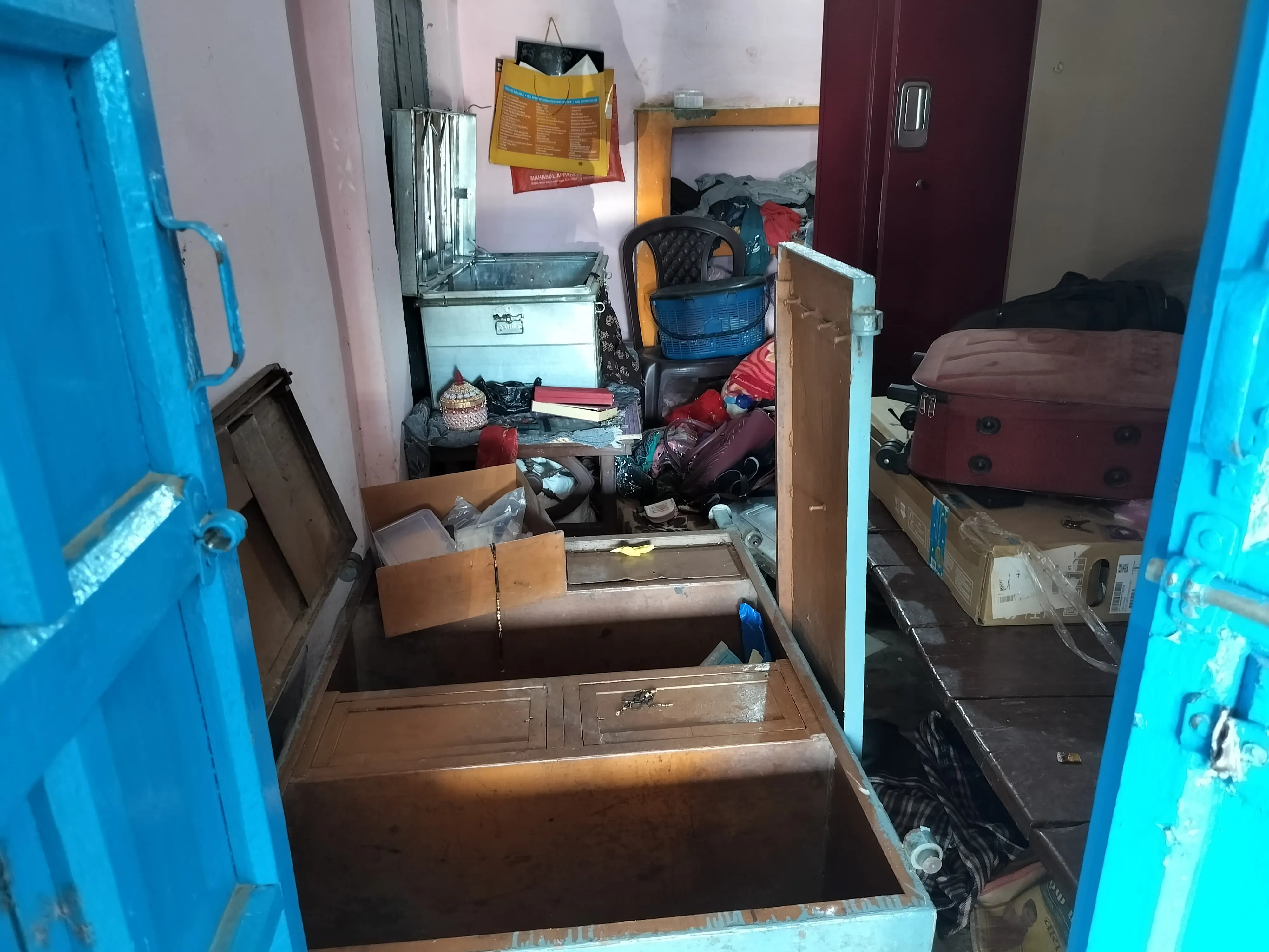 लेकिन उनके भी कमरे का दरवाजा बंद था।किसी तरह आंनद ने दरवाजा अपना दरवाजा जोर देकर खोला, और बाहर आकर देखा तो होश उड़ गया।आलमारी,संदूक व तिजोरी का ताला टूटा हुआ था।इस दौरान लगभग 150 ग्राम सोना से निर्मित पत्नी के आभूषण ,100 ग्राम दुकान का आभूषण व 4 किलो सहित डेढ़ नकदी लेकर फरार हो गये।सुबह पुलिस इसकी सूचना दी।