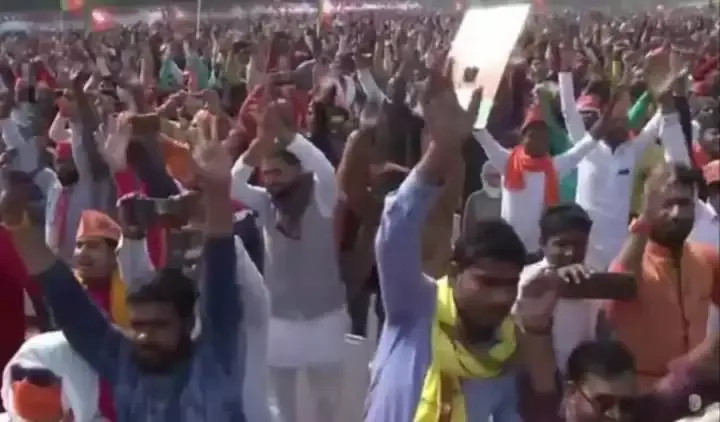 तभी यह संभव हो पाएगा और अंत में उन्होंने जनता जनार्दन से अपील है कि हमारी इस बात को गांव गांव घर घर और प्रत्येक मतदाता तक पहुंचा नहीं है कि हमने उन्हें नमस्ते भेजा है उन्हें प्रणाम भेजा है उसे स्वीकार करें और आने वाले 27 फरवरी को भाजपा का बटन दबाकर भाजपा प्रत्याशी को विजई बनाएं कमल खिलाएं *दिलचस्प बात* यह है कि प्रधानमंत्री ने किसी भी भाजपा प्रत्याशी का मंच पर नाम नहीं लिया अयोध्या के सांसद लल्लू सिंह ने और बाराबंकी के सांसद उपेंद्र सिंह ने बाराबंकी  का बना हुआ विश्व प्रसिद्ध गमछा भेंट कर प्रधानमंत्री का सम्मान जरूर किया l