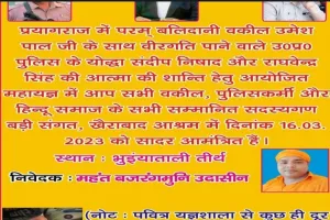 खैराबाद सीतापुर खैराबाद थाना क्षेत्र में महंत बजरंग मुनि आज एक महायज्ञ का आयोजन करने जा रहे हैं इस आयोजन में प्रयागराज में हुए उमेश पाल हत्याकांड में शामिल शहीद पुलिसकर्मियों और उमेश पाल की आत्मा की शांति के लिए...