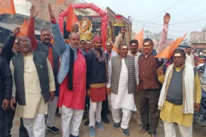 रिपोर्ट_ सतीश चंद्र मिश्र स्वतंत्र प्रभात, अदलहाट,मीरजापुर अदलहाट, मीरजापुर। श्रीराम पूजित अक्षत वितरण कार्यक्रम के तहत विश्व हिंदू परिषद प्रखंड नरायनपुर के नेतृत्व मे बुधवार को बैकुंठपुर स्थित शिव मंदिर से कलश यात्रा निकाला गया। डीजे व केशरीया झंडे व... नगर विधायक ने तिलई मौआर गांव में आवास के लाभार्थियों को सौंपा प्रमाण-पत्र